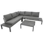 Das Set besteht aus einer großzügigen Ecklounge mit einem Stellmaß von 234 x 234 cm und einem passenden quadratischen Loungetisch (78 x 78 x 30 cm). Das rostfreie Aluminiumgestell ist anthrazitfarben pulverbeschichtet und überzeugt durch seine Langlebigkeit sowie Wetterbeständigkeit.