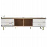 Das Marmormuster in Kombination mit der braunen Tür aus gehärtetem Glas verleiht diesem TV-Schrank eine elegante und luxuriöse Atmosphäre. Die einzigartige Wellenstruktur der Schublade verleiht Ihrem Zuhause einen künstlerischen Touch und passt perfekt zu Ihrer modernen Inneneinrichtung. Mit diesem Möbelstück wird Ihr Wohnraum zu einem Ort der Erholung und Stil.