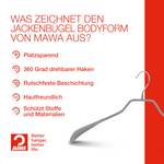 Körpergeformtes Design für Optimalen Halt: MAWA Kleiderbügel passen sich der Form von Mänteln, Jacken, Blazern und Anzügen perfekt an und verhindern ein Verziehen der Kleidung.