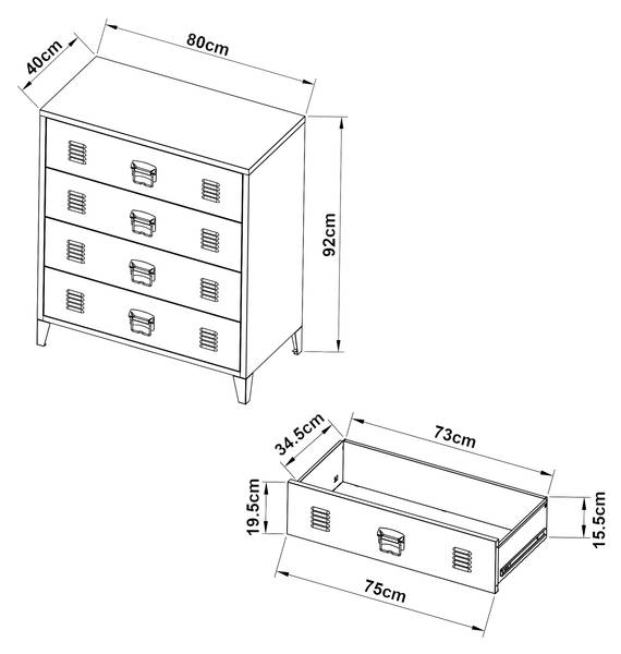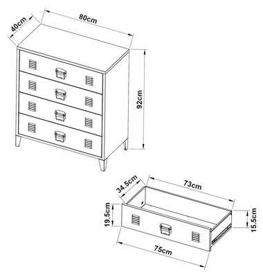 - Schublade Innen (HxBxT): 15,5 x 73 x 34,5 cm