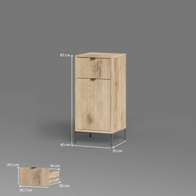 MAßE: Der Midischrank hat Maße von 40x87x35 cm (BxHxT). Tür links/rechts montierbar. Alle weiteren Details und Maße sind auf den Fotos ersichtlich.