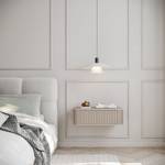 Der hängende Nachttisch Ovarlo setzt mit seinen geriffelten Fronten und sanft abgerundeten Kanten stilvolle Akzente in Ihrem Schlafzimmer. Die vertikale Struktur der Front verleiht dem Möbelstück eine moderne, strukturierte Optik, die sich harmonisch in jedes Interieur einfügt. Die abgerundeten Kanten sorgen für ein sanftes, benutzerfreundliches Design und unterstreichen die elegante Form. Die praktische Schublade bietet Platz für Ihre wichtigsten Utensilien wie Bücher, Brillen oder kleine Alltagsgegenstände.