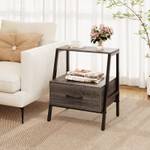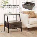 Der Nachttisch bietet eine Tischplatte und ein offenes Regal, um unterschiedlichen Aufbewahrungsbedürfnissen gerecht zu werden. Unterhalb des Regals bietet eine praktische Schublade mit Metallschienen zusätzlichen Platz für Bücher und andere Kleinigkeiten und macht ihn gleichzeitig praktisch und zugänglich. Konstruiert mit einem verstärkten Metallrahmen garantiert dieser Nachttisch Stabilität und Langlebigkeit. Die Ergänzung durch verstellbare Fußpolster ermöglicht Stabilität auf unebenen Oberflächen. Dieses Beistelltisch im Bauernhaus-Stil wurde entwickelt, um Funktionalität direkt an Ihr Bett oder neben das Sofa zu bringen.