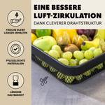 Dank des schwarzen Metalls bildet die Obstschale einen perfekten Kontrast zu den meist farbenprächtigen Lebensmitteln. Die Drahtstruktur ermöglicht eine ideale Luftzirkulation rund um Ihre frischen Lebensmittel, was ein unnötig schnelles Verderben der gesunden Alltagsbegleiter verhindert.