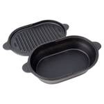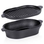 - Gusseiserner Bräter 2in1 - Kleiner Bräter mit Deckel, der auch als separates Backgefäß dient. Der Bräter eignet sich hervorragend zum Braten, Schmoren und Überbacken von Fleisch, Gemüse und Kartoffeln. Nach dem Abnehmen des Deckels erhält man zwei separate Gefäße. Außenmaße des Bräters ohne Deckel: 28 x 16 x 5,5 cm, Höhe mit Deckel beträgt 7,2 cm, und das Fassungsvermögen l. Der gusseiserne Deckel mit Grillfläche hat die Maße 28 x 16 x 2 cm.