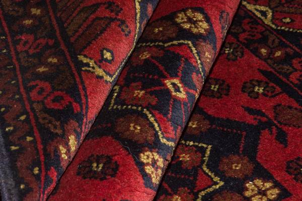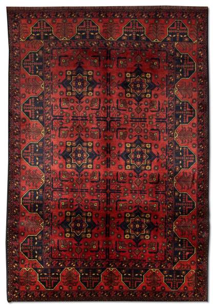 Der wunderschöne Afghan Teppich – Kunduz ist ein echter Khal Mohammadi und begeistert durch seine satten Farben und die atemberaubende Musterung. Diese Teppiche werden in Afghanistan auf Dörfern und in Werkstätten von Hand geknüpft. Afghan Teppiche sind wegen ihrer schönen roten Farbschattierung berühmt. Einige Hauptmerkmale dieser Teppiche sind die wiederkehrenden Hexagone, die Rauten, die Yomut-Motive und das Muster, das mit einem Elefanten Fußabdruck gleicht. Die Wolle ist weich und damit sehr strapazierfähig. Oftmals wirkt die Wolle leicht glänzend. Seine Qualität überzeugt jeden Liebhaber orientalischer Teppiche. Ein schöner Teppich, der seinen Preis absolut wert ist.