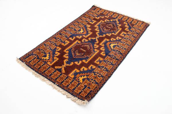 Dieser Belutsch-Teppich ist ein wundervolles Beispiel echter Nomadenkunst. Der Belutsch wird in 3 Ländern geknüpft: im Iran, in Afghanistan und in Pakistan. Seinen Namen hat er vom Stamme der Baluchen, wird aber auch von anderen Stämmen geknüpft. Vorwiegend werden kleine Teppiche bzw. Brücken geknüpft. Große Teppiche sind selten. Sie weisen ein sehr gutes Preis-Leistungsverhältnis auf, sind sorgfältig gearbeitet und werden in vielen verschiedenen, oft geometrischen, Mustern hergestellt. Die Teppiche sind strapazierfähig und sind unter allen modernen Nomadenteppichen als sehr bekannt.