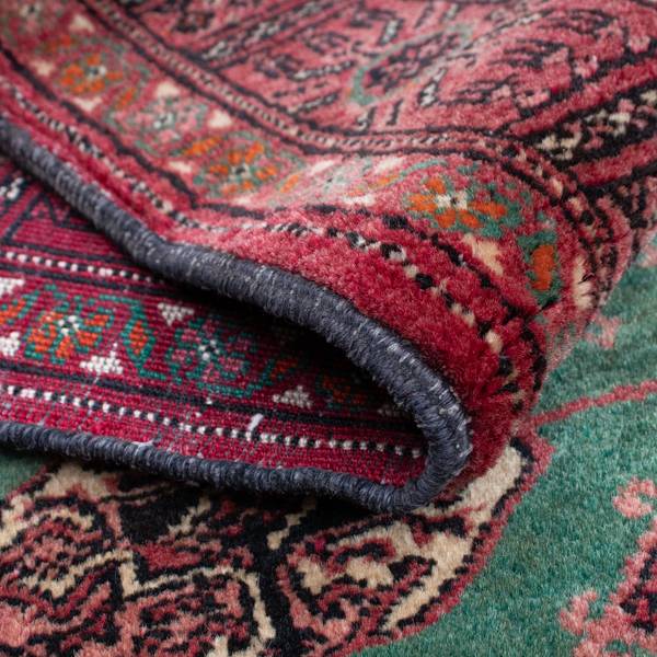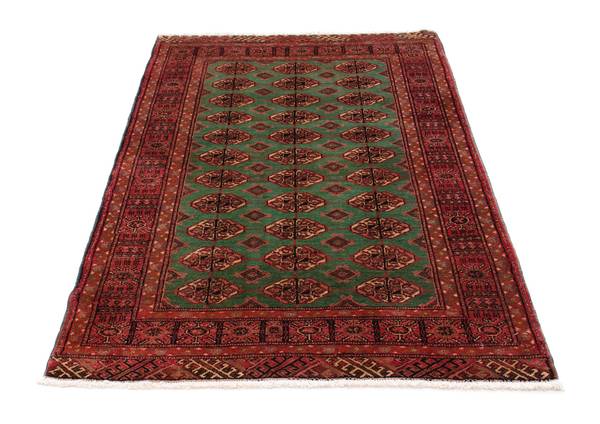 Dieser Belutsch-Teppich ist ein wundervolles Beispiel echter Nomadenkunst. Der Belutsch wird in 3 Ländern geknüpft: im Iran, in Afghanistan und in Pakistan. Seinen Namen hat er vom Stamme der Baluchen, wird aber auch von anderen Stämmen geknüpft. Vorwiegend werden kleine Teppiche bzw. Brücken geknüpft. Große Teppiche sind selten. Sie weisen ein sehr gutes Preis-Leistungsverhältnis auf, sind sorgfältig gearbeitet und werden in vielen verschiedenen, oft geometrischen, Mustern hergestellt. Die Teppiche sind strapazierfähig und sind unter allen modernen Nomadenteppichen als sehr bekannt.