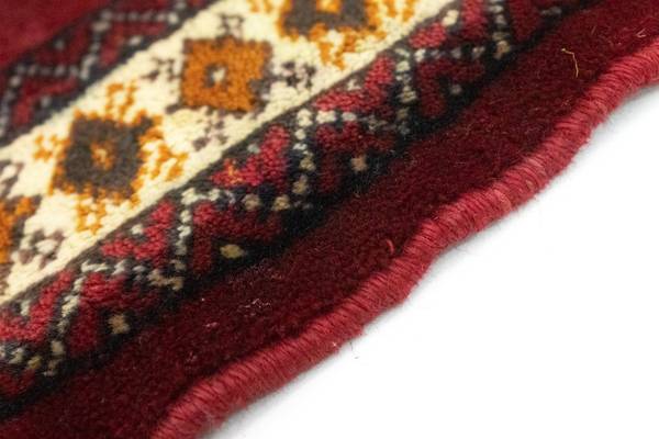 Diese hochwertigen Teppiche werden vor allem in Turkmenistan und in den Nachbarregionen, wie im Iran oder in Afghanistan geknüpft. Die Wolle ist von sehr hoher Qualität, welches den Teppich weich und damit sehr strapazierfähig macht. Das Muster besteht aus sich wiederholendem Yomut Motiven. Die vorherrschenden Farben sind in roten und hell-beigen Nuancen gehalten. Mit dem Kauf eines Turkaman Teppichs holst du dir somit ein wahres Kunstwerk ins Haus, das dir noch lange Freude bereiten wird.
