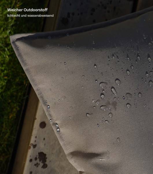 - ROBUST & KOMFORTABEL! Aus feinem, wasserabweisendem Outdoorstoff mit modernem Stehsaum - pflegeleicht, langlebig und angenehm weich. Der Bezug ist abnehmbar und kann bei 30 °C im Schonwaschgang gereinigt werden.