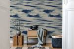 Hommage an den Ozean, "Baïna", Tapete mit klarem Design, verherrlicht die Wellen und das unaufhörliche Brechen, das sie begleitet.