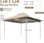 Dank des Pop-up-Designs kann der Pavillon mit einfachen Schritten sofort aufgebaut werden. Sie müssen nur den Metallrahmen öffnen und das Verdeck anbringen. Anschließend können Sie die Höhe anpassen, um das Zelt einsatzbereit zu machen und Ihren spezifischen Bedürfnissen gerecht zu werden.
