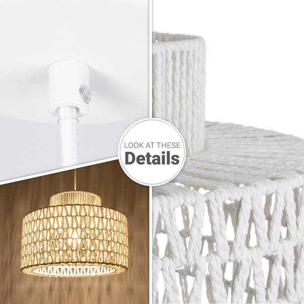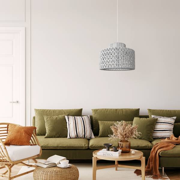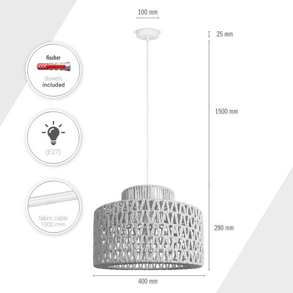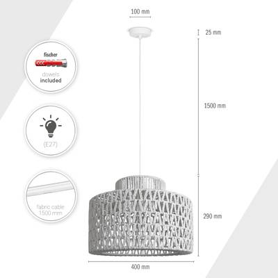 - DIE OPTIK – Diese trendige Pendelleuchte mit verspieltem Schirm im Boho-Design kommt in dezentem Schwarz, Weiß oder in natürlichem Farbton daher.