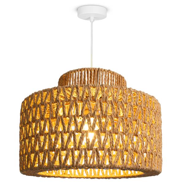 - DIE OPTIK – Diese trendige Pendelleuchte mit verspieltem Schirm im Boho-Design kommt in dezentem Schwarz, Weiß oder in natürlichem Farbton daher.