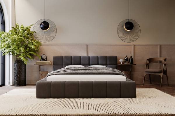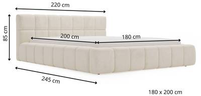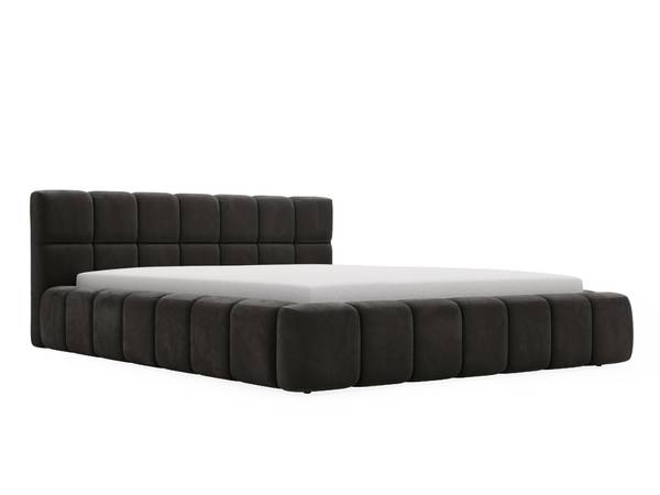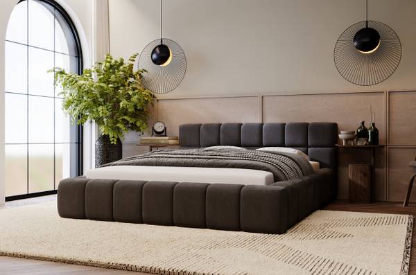 Ein charakteristisches Merkmal dieses Möbelstücks ist sein beeindruckender Stil. Zur Herstellung wurde eine dicke Schaumstoffschicht verwendet, die den Rahmen des Bettes perfekt ausfüllt und dem Möbelstück eine einzigartige Form verleiht. Die Seiten des Bettes sind dick genug, um beispielsweise ein Telefon darauf abzulegen. Das weiche und schön gesteppte Kopfteil ist ein funktionales Konstruktionselement des Bettes, da es beim Lesen oder Fernsehen eine ausgezeichnete Rückenstütze bietet. Zusätzlich verfügt das Bett Alicante über dekorative Quadrate am Kopfteil, die sehr elegant und stilvoll aussehen. Das originelle Design des Bettes mit Stauraum Alicante harmoniert perfekt mit einem luxuriösen und eleganten Raumdekor.
