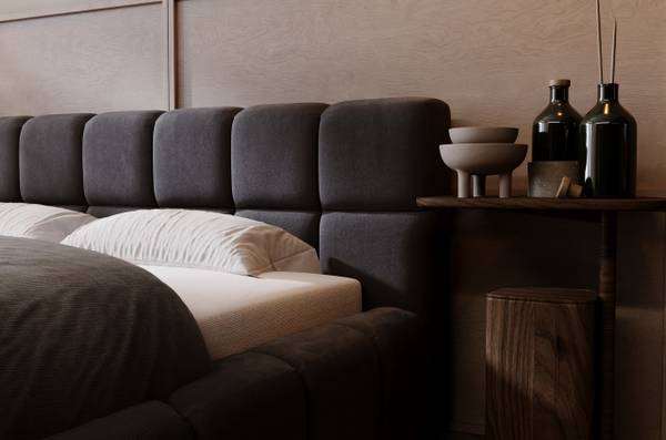 - Die Rückseite des Bettes ist mit schwarzem Vigofill gepolstert.