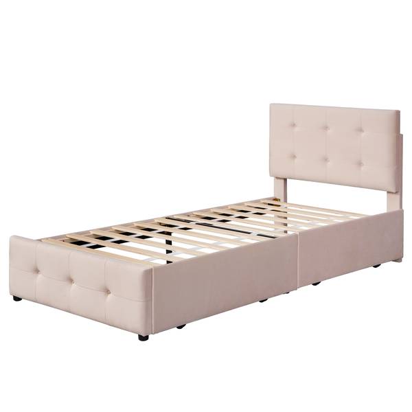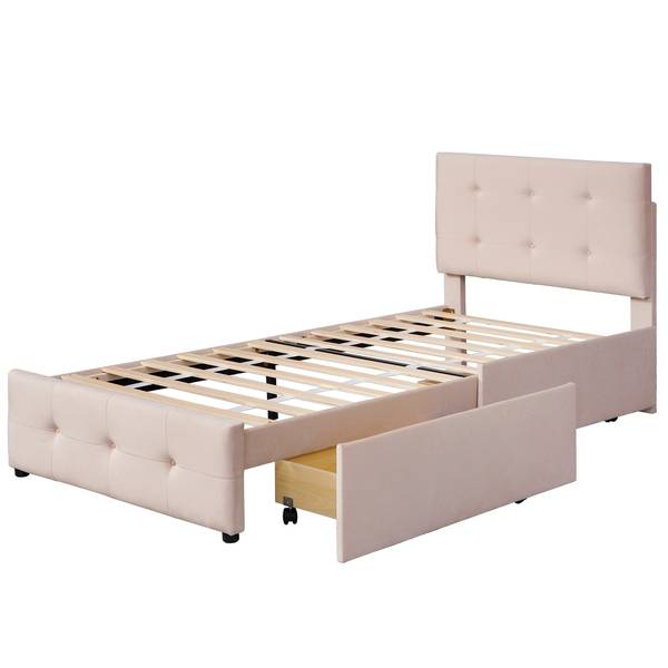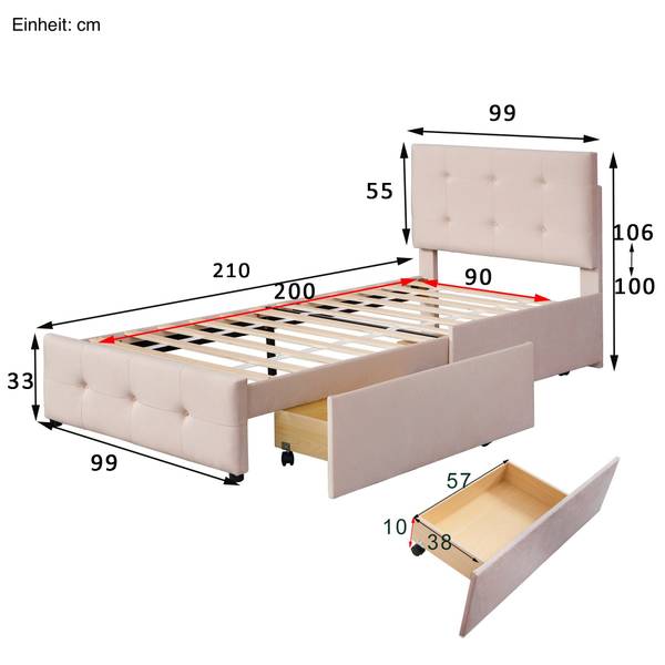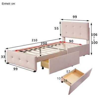 - Lieferumfang: 1x Polsterbett, 2x Schubladen und 1x Lattenrost, ohne Matratze und Dekoration
