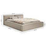 Gesamtmaße: Breite des Bettgestells ca. 232 cm, Tiefe ca. 242 cm. Bitte planen Sie etwas mehr Platz ein als bei der reinen Matratzengröße – besonders in kleineren Räumen.