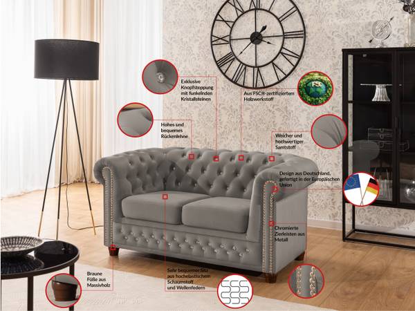 - Hochwertiger, angenehm zu berührender Grau Samt-Stoff. Sehr pflegeleicht und widerstandsfähig gegen Beschädigungen und Kratzer