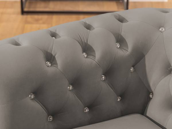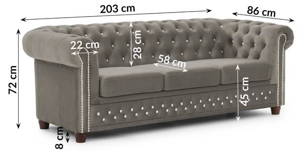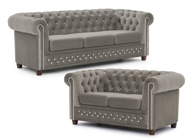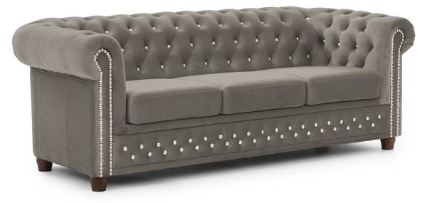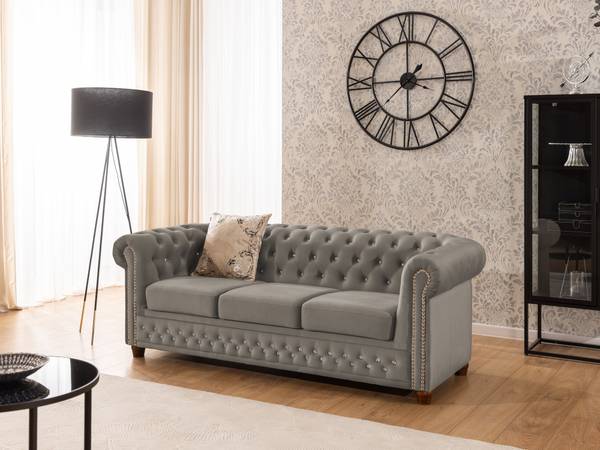 Die exklusive Cleo Blink Kollektion verbindet zeitlose Eleganz des klassischen Chesterfield-Designs mit einem modernen luxuriösen Touch. Charakteristisch sind die edle Samtoberfläche, die aufwendig gearbeitete Kristallsteppung sowie dekorative Nietenverzierungen, abgerundet durch massive braune Holzfüße, die Stabilität und eine warme Ausstrahlung verleihen. Die Sitzflächen und Rückenlehnen bestehen aus hochelastischem Schaumstoff, zusätzlich sind in den Sitzen Wellenfedern integriert, die einen besonders hohen Komfort garantieren. Die Möbelstücke bieten nicht nur ein stilvolles Erscheinungsbild, sondern auch ein außergewöhnlich bequemes Sitzgefühl dank der hochwertigen Polsterung. Für noch mehr Funktionalität sind ausgewählte Sofas und Ecksofas mit einer praktischen Schlaffunktion ausgestattet, die ideal für Gäste und kleinere Räume ist. Zur Kollektion gehören ein 3-Sitzer Sofa, ein 3-Sitzer Sofa mit Schlaffunktion, ein 2-Sitzer Sofa, ein 2-Sitzer Sofa mit Schlaffunktion, ein Sessel, ein Hocker in der Größe 75x70 cm sowie ein großzügiges 6-Sitzer Ecksofa, das ebenfalls wahlweise mit Schlaffunktion erhältlich ist. Diese Kollektion zeichnet sich auf dem Markt durch ihre Originalität aus und ist besonders gefragt, da sie sich perfekt in die aktuellen Glamour-Trends einfügt.