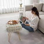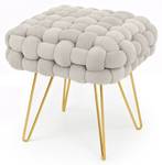 Der Sitzhocker DOTTY zeichnet sich durch ein interessantes Design aus. Der Samtbezug besteht aus verflochtenen Stoffstreifen mit einer voluminösen Knotenstruktur, was dem Hocker einen einzigartigen Charakter verleiht und ihn sofort zum Blickfang macht. Der geflochtene Pouf mit seiner charakteristischen Knotenpolsterung passt hervorragend zu Einrichtungsstilen wie Modern Boho oder Scandi Boho. Seine weiche, organische Form unterstreicht ideal den gemütlichen und natürlichen Charakter der Einrichtung. Die goldfarbenen Metallbeine unterstreichen die Eleganz und den besonderen Stil dieses Modells zusätzlich. Der Polsterhocker DOTTY ist ein echtes Highlight jeder Wohnraumgestaltung! Die Breite und Tiefe des Hockers betragen jeweils 38 cm, die Höhe 42 cm.
