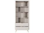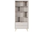 Das Regal Latina ist die perfekte Wahl für diejenigen, die Harmonie, Sanftheit und modernen Stil in ihr Zuhause bringen möchten. Dieses elegante Regal zeichnet sich durch eine warme beige Farbe aus, die Ruhe und Gleichgewicht vermittelt, während goldene Akzente ihm Eleganz und Glamour verleihen.