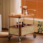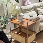Das Regal überzeugt durch seine durchdachte Aufteilung. Die obere Ablage mit Tablettstruktur eignet sich hervorragend für Kaffeezubehör, Snacks oder Getränke. Der untere Rattankorb bietet praktischen Stauraum für Flaschen, Magazine oder andere Gegenstände. Perfekt, um Ordnung zu schaffen und alles griffbereit zu haben – sei es in der Küche, im Esszimmer oder Wohnzimmer.