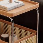 Das Regal besteht aus sorgfältig ausgewähltem Massivholz, das für Stabilität und Langlebigkeit sorgt. Das Rattan ist nicht nur ein optisches Highlight, sondern auch pflegeleicht und widerstandsfähig. Die Edelstahlbeine garantieren eine lange Haltbarkeit und einen modernen, eleganten Look. Dank der formstabilen und abriebfesten Materialien ist dieses Möbelstück besonders langlebig und bleibt Ihnen viele Jahre erhalten.