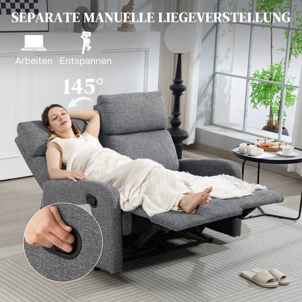 ● Jeder Sitz des Liegesessels lässt sich unabhängig bis zu 145° zurücklehnen