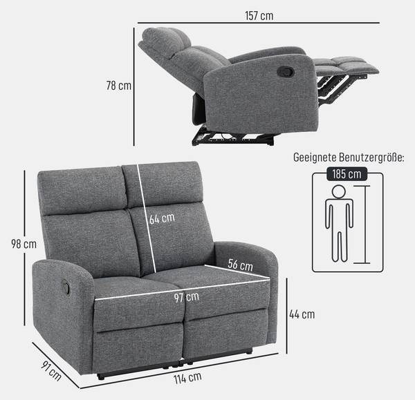 ● Gesamtabmessungen (zurückgelehnt): 114B x 157T x 78H cm