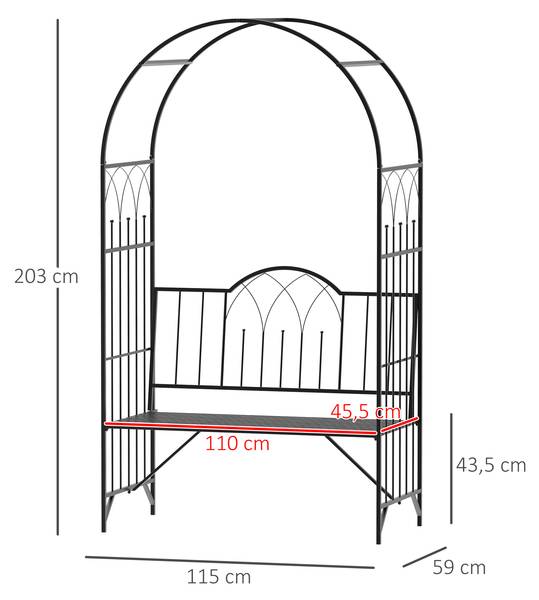 ● Rosenbogen mit Sitzbank in stilvoller Optik für Garten oder Terrasse