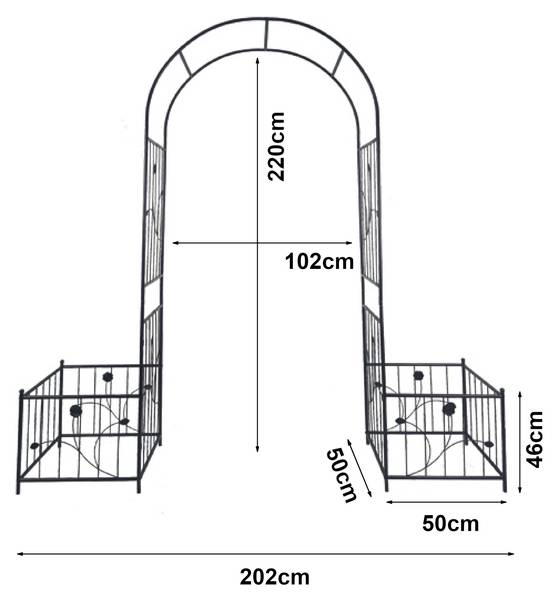 - Eleganter Rosenbogen mit zwei integrierten Pflanzkästen