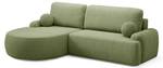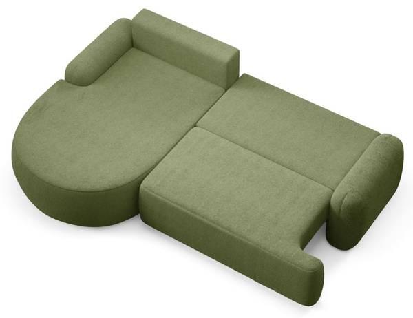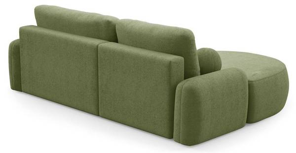 Seine weichen, runden Formen verleihen dem Ganzen ein harmonisches, leichtes Erscheinungsbild, das es von klassischen, kantigen Ecksofas abhebt. Besonders ins Auge fällt die abgerundete Ottomane, die nicht nur dekorativ wirkt, sondern auch maximalen Komfort bietet – ideal zum Beine hochlegen oder als zusätzliche Sitzgelegenheit. Das Ecksofa lädt zum Entspannen in Sitz-, Halb-Liege- oder Liegeposition ein.