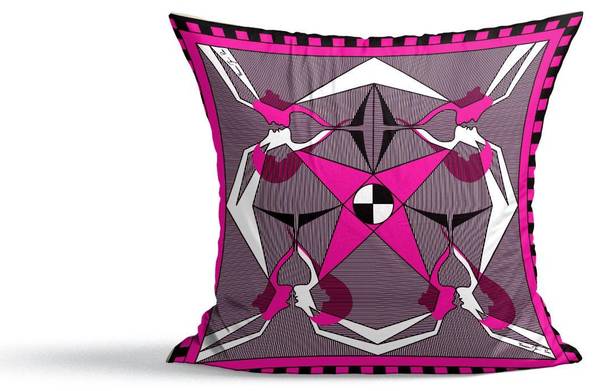 Sofakissen, 40x40 cm (15.74 x 15.74 in), aus Samtstoff, mit dem Kunstdruck "Fuchsia Alchemisches Paar" auf der Vorderseite und einer einfarbigen Rückseite. Handgefertigt in Sizilien.