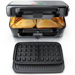 - 3 Wechselplatten: Waffel-/Sandwich-/Grillplatten mit Antihaftbeschichtung und 2 Zonen