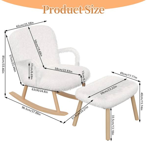 [Maße & Pflege]: Mit Außenmaßen von 96.5 x 65 x 85 cm (L x B x H) und einer Hocker von 59 x 45 x 33.5 cm bietet dieser schaukelstuhl wohnzimmer genügend Platz für entspannte Stunden. Er ist bis zu 130 kg tragfähig und einfach zu montieren. Für die Reinigung empfehlen wir ein feuchtes Baumwolltuch