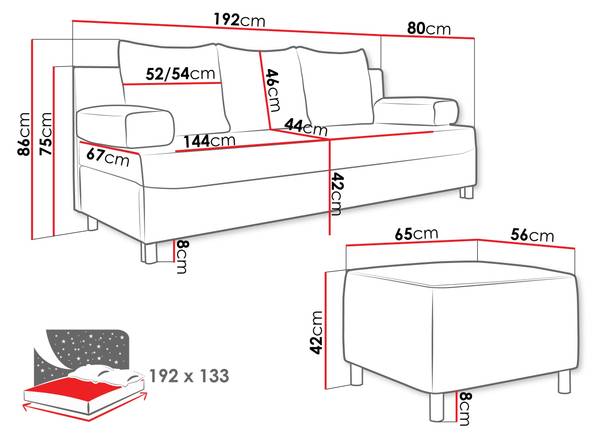 - Schlaffläche: 192x133 cm