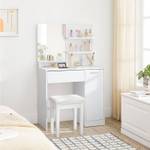 Vervollständigen Sie Ihr Make-up und erleichtern Sie Ihre morgendliche Routine mit diesem Schminktisch. Die Schublade bietet ausreichenden Platz für Lidschatten, Rouge und andere Accessoires. Das Fach auf der rechten Seite kann für Toner, Serum und Creme sein. Gestalten Sie Ihre Kosmetikabteilung ganz nach Ihren Vorstellungen und verlassen Sie Ihr Haus topgestylt!