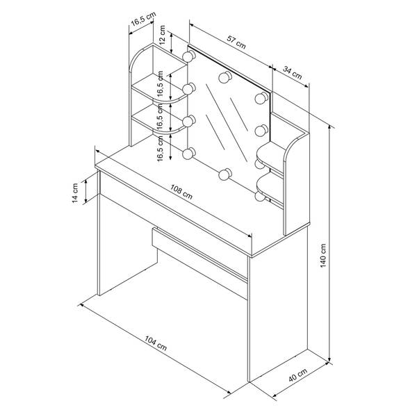 Moderner Schminktisch mit Beleuchtung LED Lichterkette
