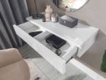 Dank des glänzenden Weißen und der sorgfältig verarbeiteten ABS-Kanten präsentiert sich die Nusco-Schminktisch äußerst elegant und modern. Sie ist die ideale Ergänzung sowohl für moderne als auch glamouröse Innenräume und verleiht ihnen Anmut und Klasse.