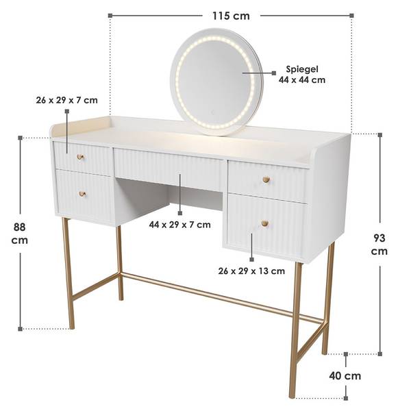 - Schminktisch (BxTxH): 115 x 40 x 137 cm