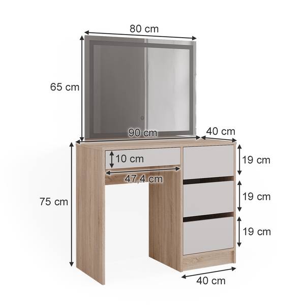 Schminktisch: 90 x 75 x 40 cm (BxHxT)
