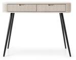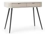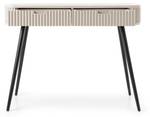 Der Viva-Schminktisch ist ein wunderschönes Möbelstück, das den Erwartungen einer sehr breiten Kundengruppe gerecht wird. Hier finden sowohl Liebhaber moderner Stile als auch Anhänger von industriellen oder glamourösen Arrangements etwas Passendes. Dies liegt alles an den geriffelten Fronten und den hohen metallenen Beinen. Ein zusätzlicher Vorteil sind die zwei Schubladen, die sich auf bewährten und zuverlässigen Rollführungen bewegen.