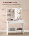 - [Verstellbare Ablagen] Die 2 Ablagen auf der linken Seite und die mittlere Ablage auf der rechten Seite dieses Schminktischs sind in 3 Höhen verstellbar. Sie bieten eine ideale Bühne für ihre Gegenstände, egal ob sie groß oder klein sind