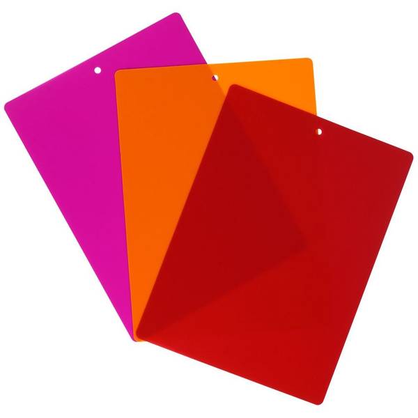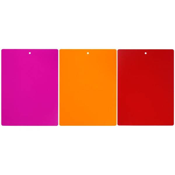 Ein Set bestehend aus drei Küchenbrettern in verschiedenen Farben. Die Schneidebretter haben die Form einer flexiblen Unterlage, die sich leicht biegen kann, was das Verschieben der geschnittenen Produkte erleichtert. Drei Farben im Set ermöglichen es, jedem Brett einen passenden Zweck zuzuordnen, z.B. ein Brett für Fleisch, Fisch oder Gemüse. Dank dieser flexiblen Bretter halten Sie Ihre Tischplatte sauber und schützen sie vor Kratzern. Das Originalprodukt der tschechischen Marke Orion. Gemäß den europäischen Normen hergestellt.