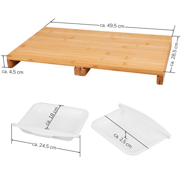 - Abmessungen: ca. 49,5 x 4,5 x 28,5 cm (B/H/T) // Auffangschalen ca. 24,5 x 18 cm (B/T).