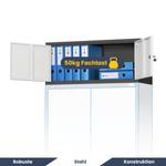 Gefertigt aus robustem, pulverbeschichtetem Stahl mit 0,6 mm Stärke ist der Aufsatz besonders stabil und widerstandsfähig gegen mechanische Belastungen. Die kompakte Konstruktion lässt sich sicher auf vorhandene Aktenschränke setzen oder separat an der Wand befestigen. Dank integrierter Befestigungspunkte bleibt die Erweiterung fest an ihrem Platz und erhöht die Sicherheit im täglichen Gebrauch.