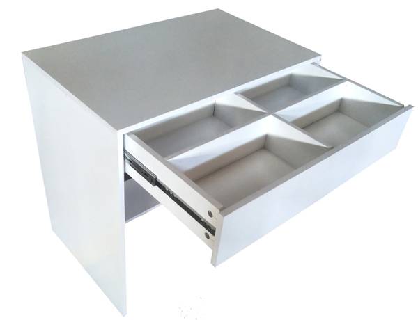 - Eine Schublade mit vier Fächern, jeweils 15 x 19 cm
