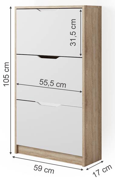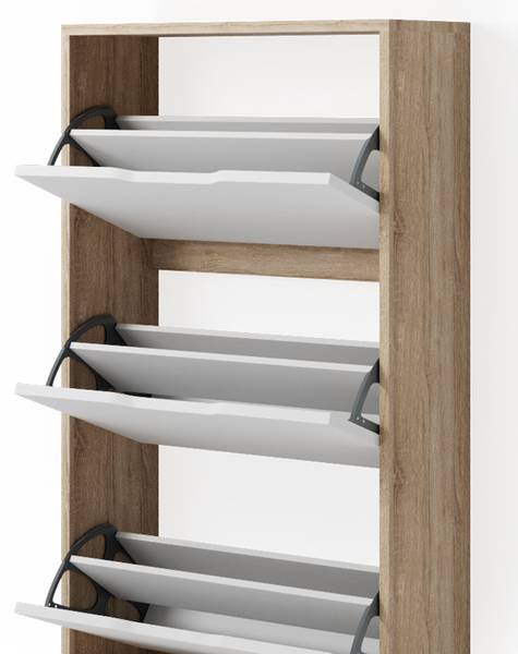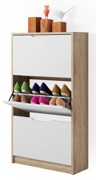 Der Schuhkipper Luca mit seinen 3 Fächern ist die perfekte Lösung für alle, die einen platzsparenden und modernen Schuhstauraum suchen. Ob im Flur, im Schlafzimmer oder im Ankleidezimmer, dieser Schuhschrank bietet genug Platz für all Ihre Lieblingsschuhe. Die klappbaren Schuhregale sind flexibel einsetzbar und passen sich Ihren Bedürfnissen an. Der Luca Schuhkipper ist nicht nur praktisch, sondern auch ein echter Hingucker. Sein moderner Stil und die Kompatibilität zu anderen Artikeln der Luca-Kollektion machen ihn zu einem echten Lieblingsstück in Ihrem Zuhause. Verabschieden Sie sich von chaotischen Schuhbergen und gönnen Sie sich den Schuhkipper Luca - für ein aufgeräumtes und stilvolles Zuhause.