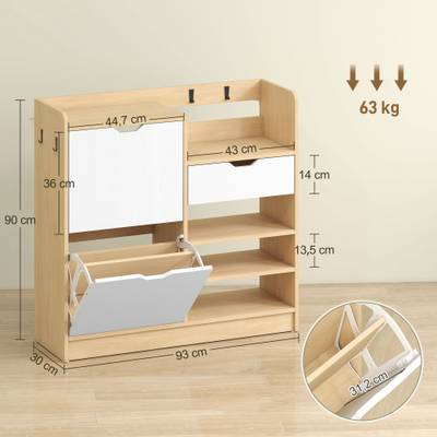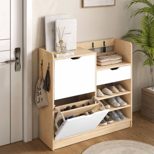● Zwei Klappschubladen der Schuhaufbewahrung bieten Platz für bis zu acht Paar Schuhe